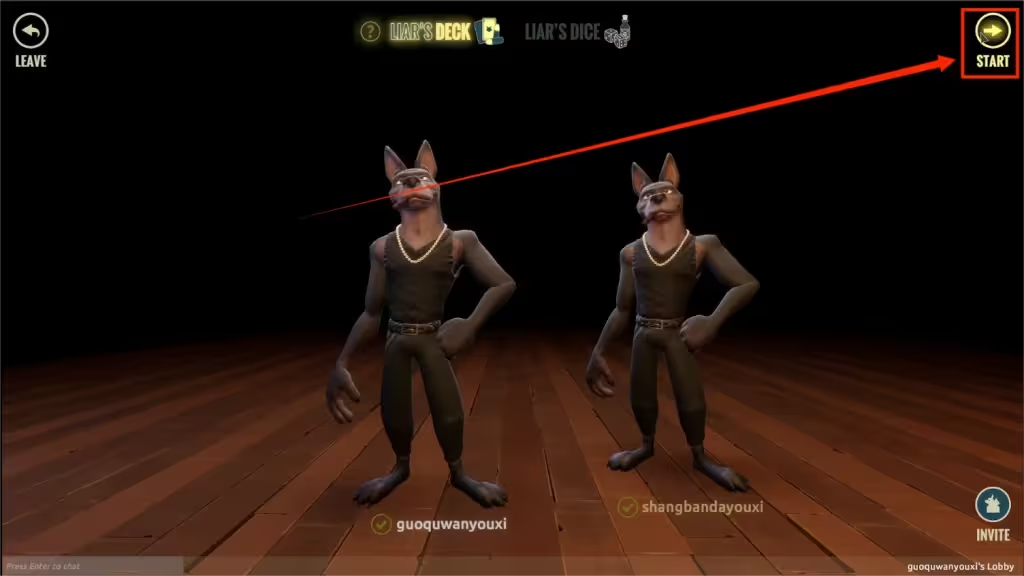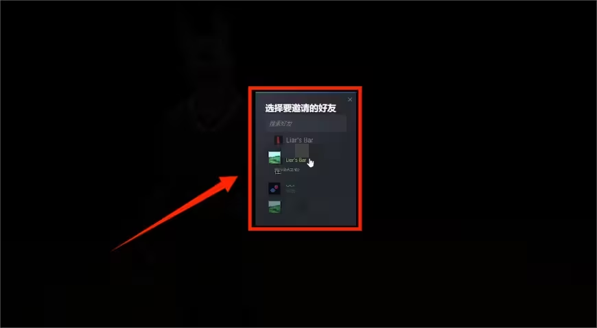 从这里选择你想要邀请的朋友。当房主发送邀请后好友的steam聊天框就会出现游戏邀请选项,点击就能加入房间了。等所有玩家都准备好后房主点击“开始游戏(Start )”,一场充满悬疑和刺激的较量就开始了。
