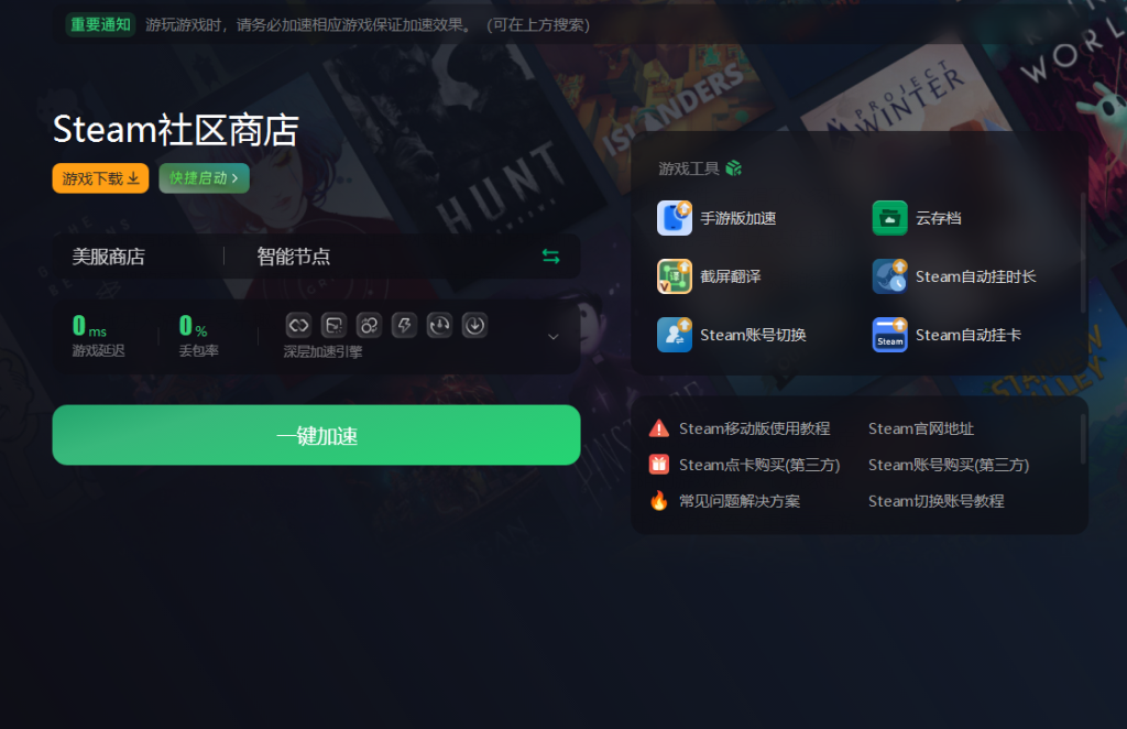 提及最受欢迎的游戏平台,Steam无疑是首选。汇聚了全球各地的游戏开发者带来的海量精品游戏,加之丰富的社交功能、成就系统和创意工坊,为玩家提供了无尽的乐趣和奇妙体验。然而由于网络限制等因素,部分玩家在尝试连接Steam商店时可能会遭遇无法连接服务器或无法流畅游玩的问题。许多玩家纷纷寻求加速器的帮助,以期获得更加稳定的游戏体验。下面小编就为大家推荐一款在Steam商店加速方面表现出色的加速器。