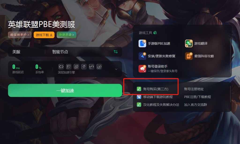 当然啦如果觉得注册账号太繁琐,或者想快点体验到PBE的乐趣,也有个捷径那就是通过奇游加速工具购买PBE账号。