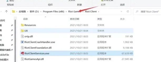 在上一级目录中找到并点击进入有“LeagueClient.exe”文件的文件夹。
