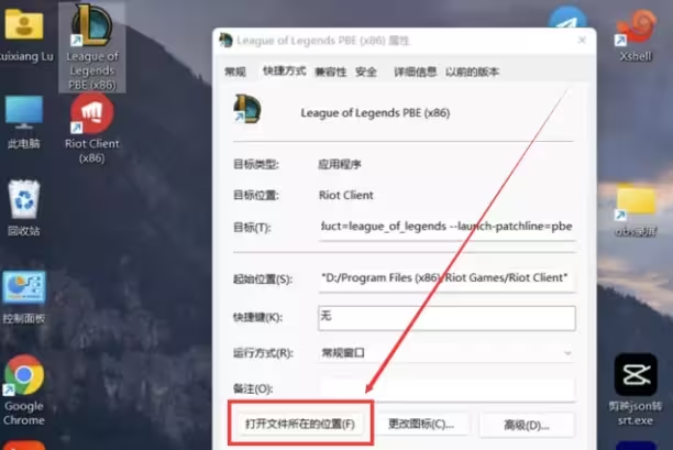 接下来把“LeagueClient.exe”这个文件创建个快捷方式到桌面,方便后续操作。