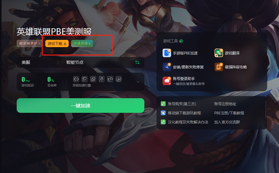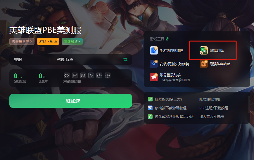 打开奇游找到PBE的加速页面,勾选“游戏翻译”选项。然后直接启动游戏,你会发现游戏已经被一键汉化成中文啦。