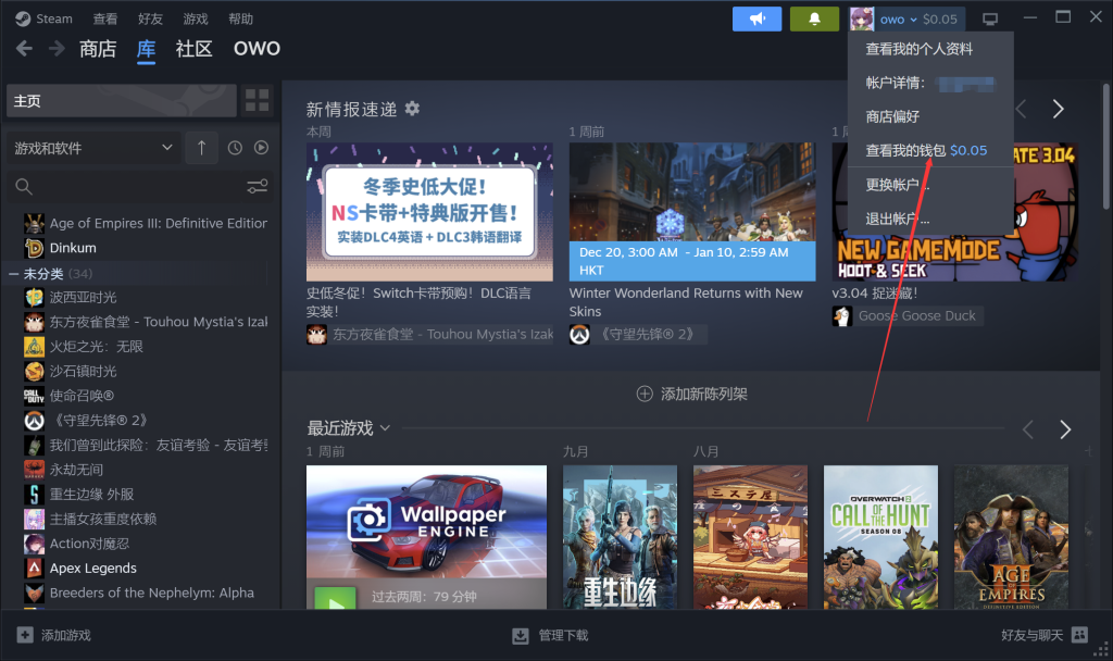 2. 打开Steam并查看钱包:加速成功后,启动Steam客户端,并点击右上角的“查看我的钱包”选项。