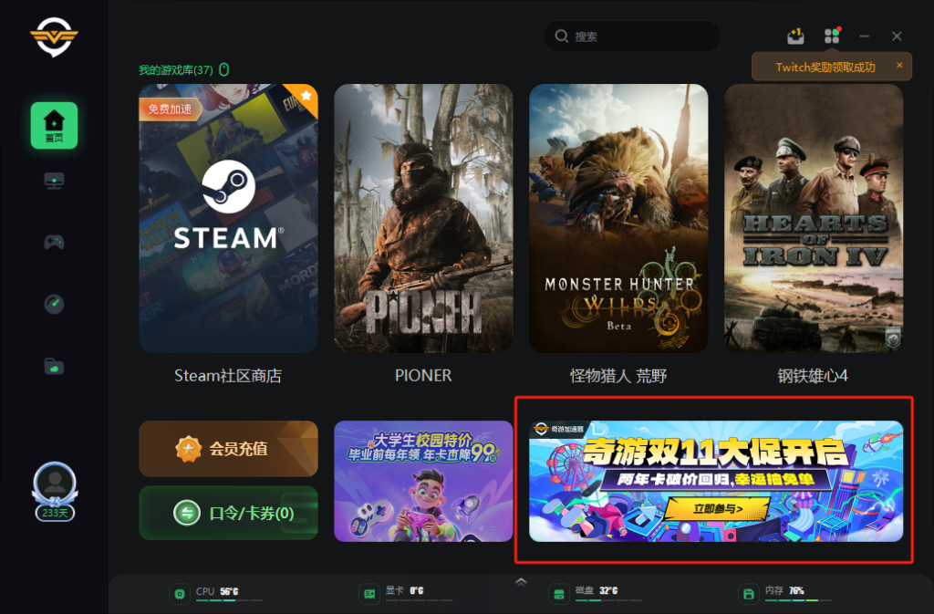 奇游双十一活动开启,两年卡史低返场!一个账号可畅玩全生态游戏四端(PC、主机、移动、MacOS),还有超多双十一活动。