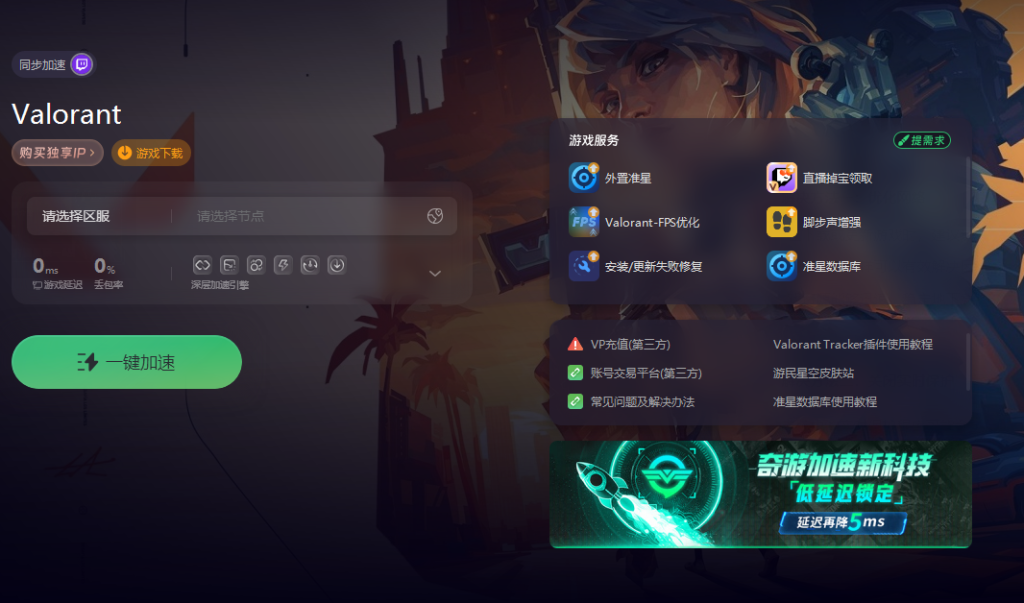 在下载或更新游戏时,建议玩家们打开奇游 加速工具搜索“瓦罗兰特”,优化电脑本地网络的环境。这样可以有效解决因网络问题导致的瓦罗兰特下载慢/更新下载慢等情况,确保游戏资源能够迅速、稳定地下载到本地。
