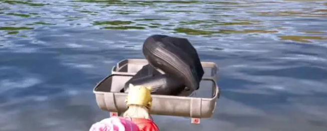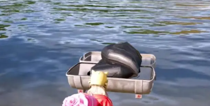 橡皮艇是这次推出的新载具。其实在沙漠地图和雨林地图中,我们曾见过类似皮艇类型的载具,不过那些是直接刷新好的。而橡皮艇不同,它需要充气。玩家获得后,在水里打开,经过三四秒的充气过程,就能使用了,之后玩家可以跳上去划桨前行。