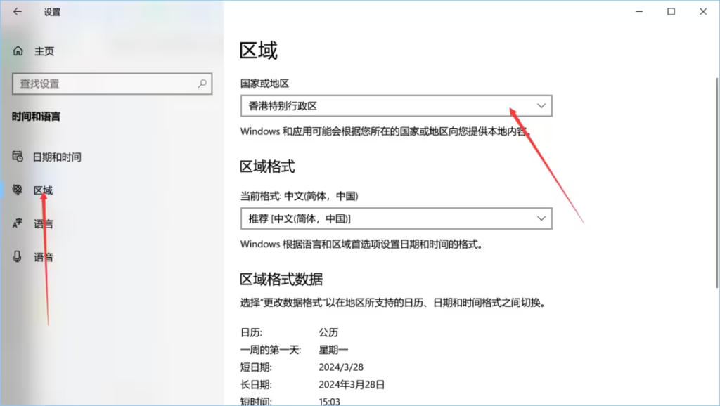 首先咱们得搞定地区设置这个小问题。这样才能顺利登上XGP的大船,在电脑上的“设置”里找找“时间和语言”这个选项,然后把地区改成香港。