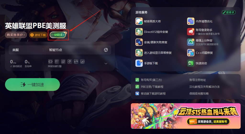在打开云顶s15pbe美测服过程中,可以尝试使用网络加速工具(如奇游),搜索”云顶s15pbe美测服”并优化电脑本地网络环境。通过改善网络连接,可以有效解决因网络波动或延迟导致的汉化失败、vanguard报错等问题,从而顺利进入游戏。手机党也有福利,奇游有手机加速版,加速页面能轻松切换,扫码就能得到 APP,随时随地加速都不会掉线。