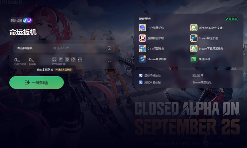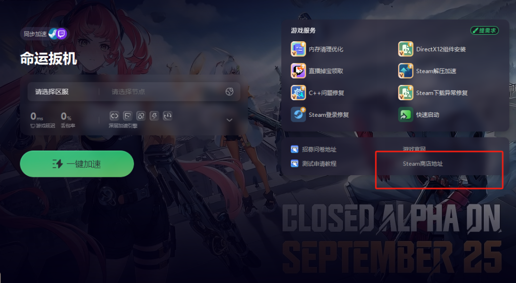首先玩家们可以借助奇游加速工具来助力,先打开奇游加速工具,对命运扳机进行加速,加速完成后,点击右侧的Steam商店地址。