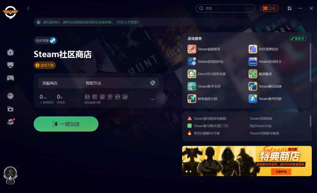 若支付时遇到问题,可借助奇游加速器优化网络环境。支付虽不主要依赖网速,但稳定的网络能减少数据传输中的延迟和丢包,助力支付顺利完成。选择适配 Steam 服务器节点的奇游加速器,确保网络设置正确,关闭后台无关程序以释放带宽,可提高支付成功率。在口令兑换处输入 qy666,能领取 3 天加速时长。