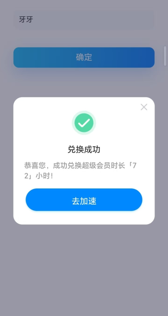 • 点击个人头像-个人资料底部-口令入口,输入【牙牙】可以免费获得加速时长。