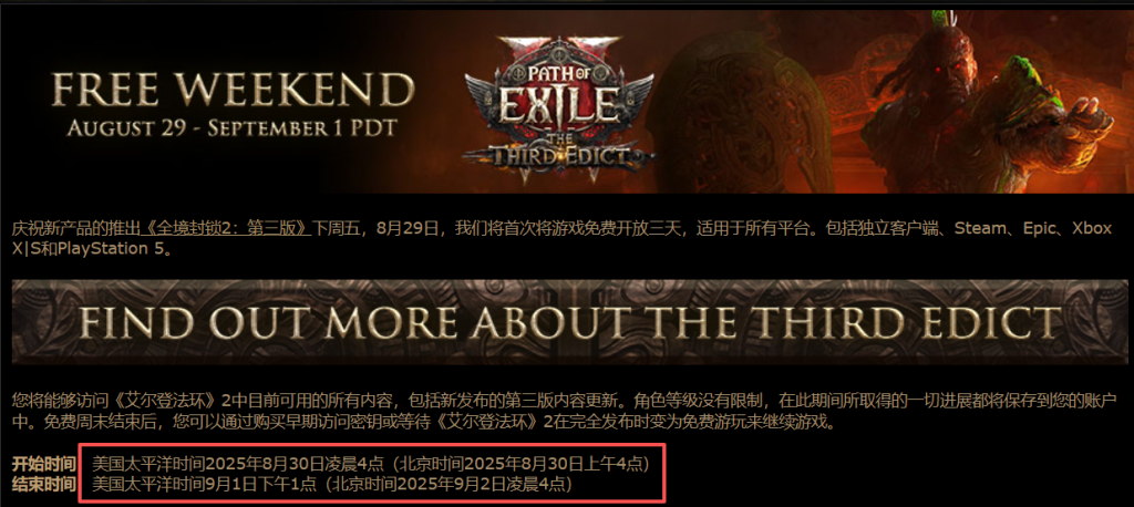 官方还安排了免费试玩时段,具体时间为2025年8月30日凌晨4点至9月2日晚上11点59分(北京时间)。试玩期间可以体验到正式版的全部内容。