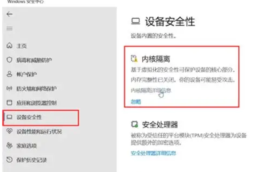 内存完整性功能在一定程度上会影响游戏的运行,关闭该功能有可能解决无畏契约 CPU 虚拟化报错问题。