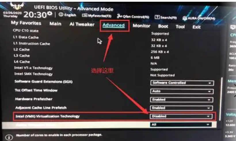 解决方法二:确认虚拟化状态,进入 BIOS 设置开启虚拟化功能