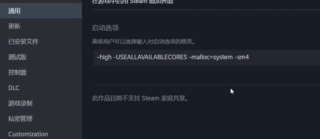 在 Steam 平台游玩时,玩家们可以借助 Steam 叠加界面来设置启动项代码。在启动选项中输入“high -USEALLAVAILABLECORES -malloc=system -sm4”这一串代码,能为游戏运行带来显著优化。
