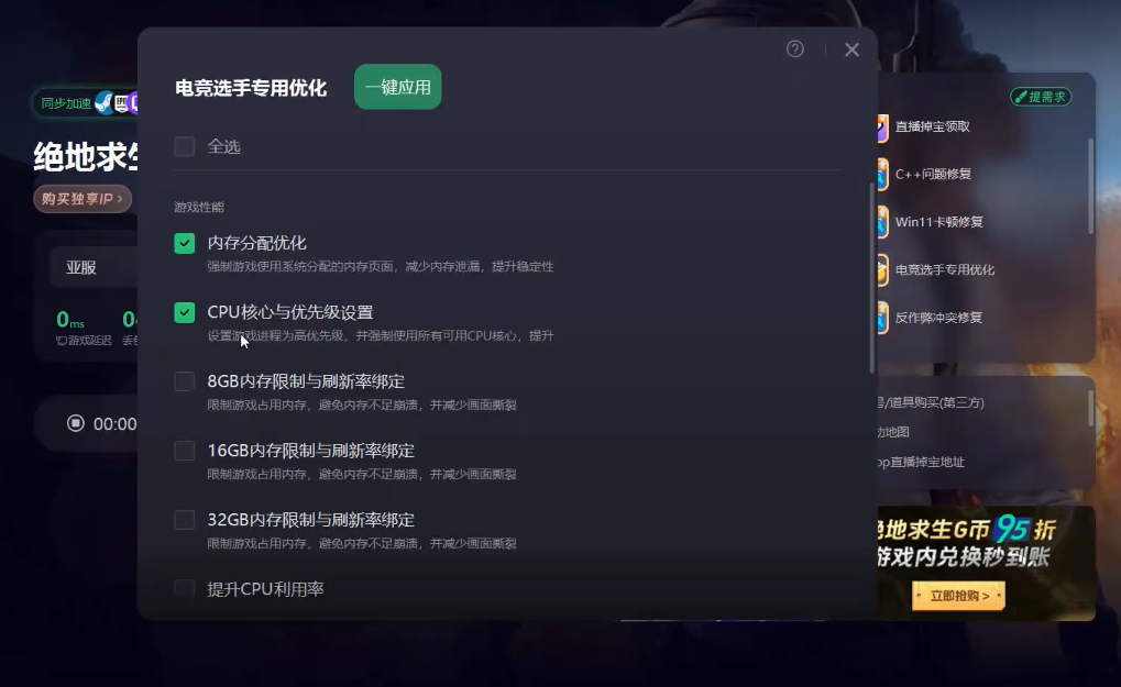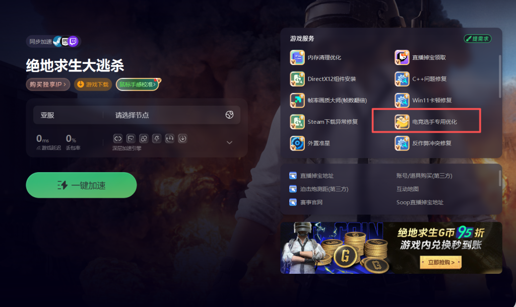 除了启动项代码优化,网络优化也不容忽视。使用奇游加速工具,点击电竞选手专业优化选项,进入后依据自身电脑配置进行勾选设置,可进一步降低延迟,减少网络波动对游戏的影响,让操作更加跟手。