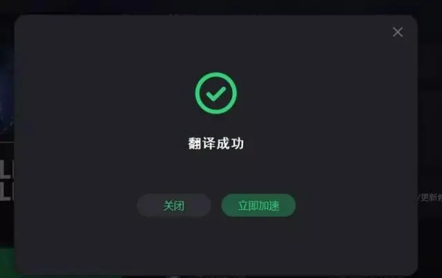 玩家们勾选这个选项,会出现翻译成功的提示,直接点击立即加速就可以了。