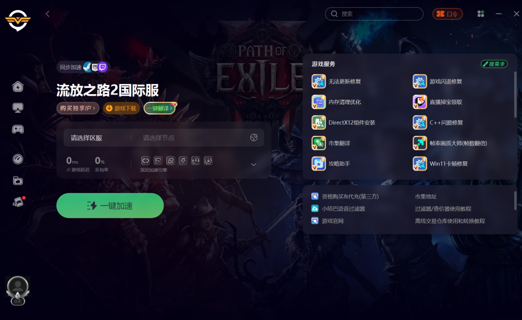 由于《流放之路 2》国际服在 Steam 平台锁国区,玩家需借助外区账号登录。打开奇游加速器,点击右购买测试资格以及账号,便能成功解决游戏锁区问题,顺利开启游戏之旅。