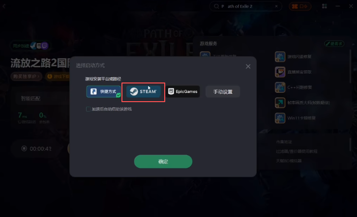 然后通过Steam商店搜索流放之路2进行下载,加速开启之后,直接选择“通过Steam启动游戏”,Steam就会自动开始下载安装。