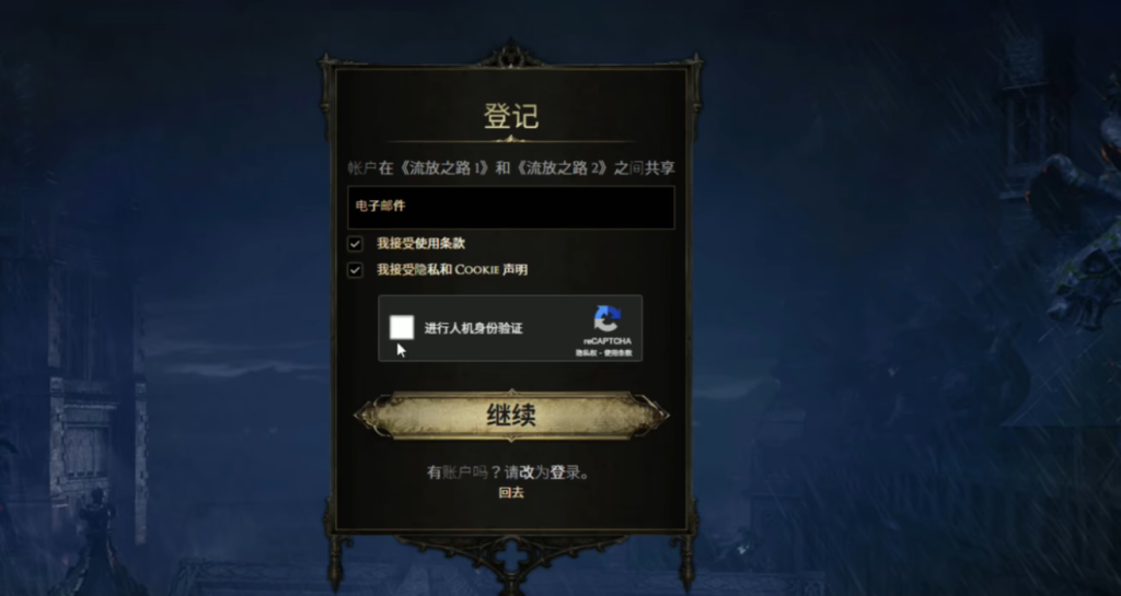 有《流放之路1》账号的玩家,可以直接登录《流放之路2》;没有账号的玩家们要通过加速页面点击“官网地址”进入注册界面。