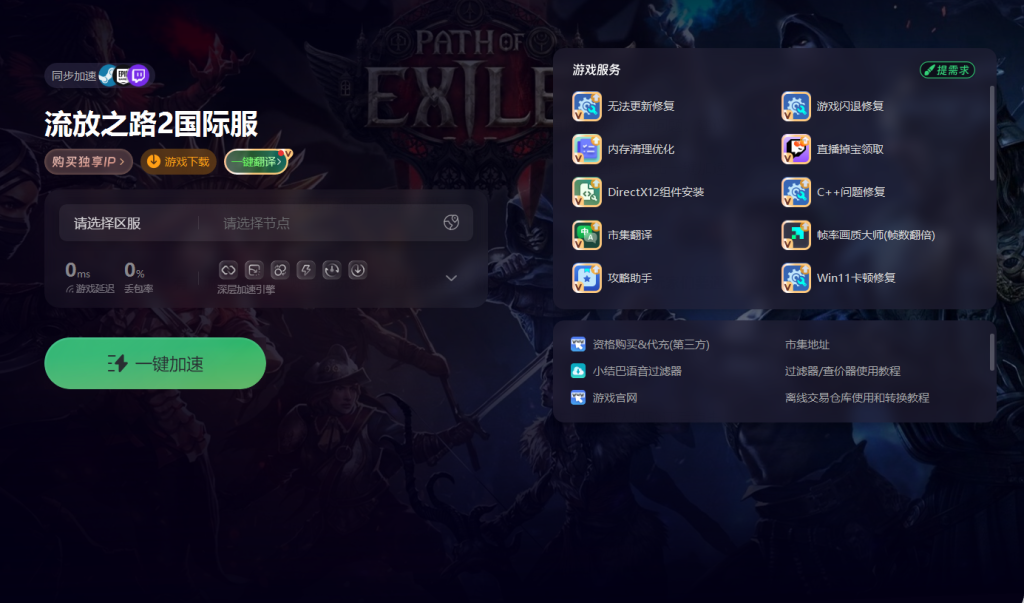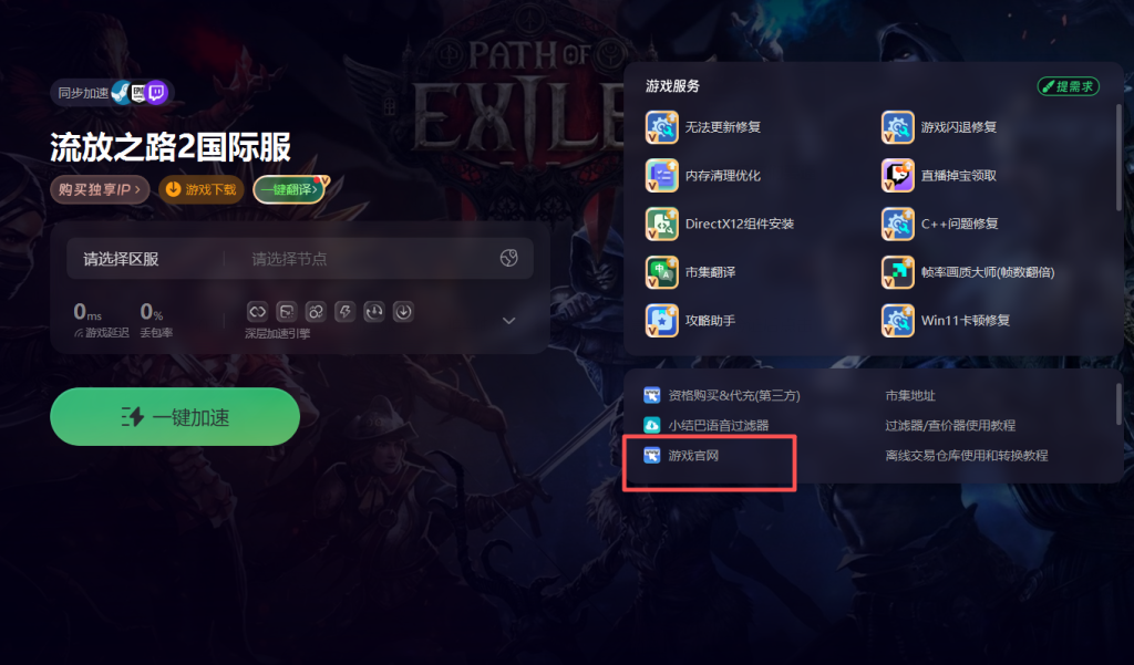 由于流放之路2为国际服游戏,直接连接可能面临卡顿、官网无法访问等问题。建议玩家们使用奇游加速工具优化网络环境,在加速工具中输入流放之路2点击一键加速就可以稳定连接官网并降低后续游戏延迟。