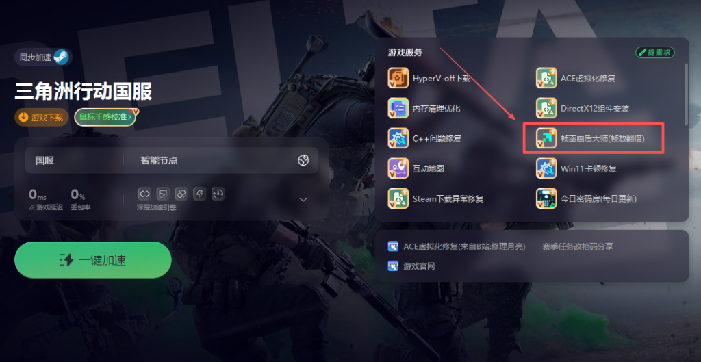 加速开启之后,不要急着启动游戏,先去右侧找到“帧率画质大师”这个选项。
