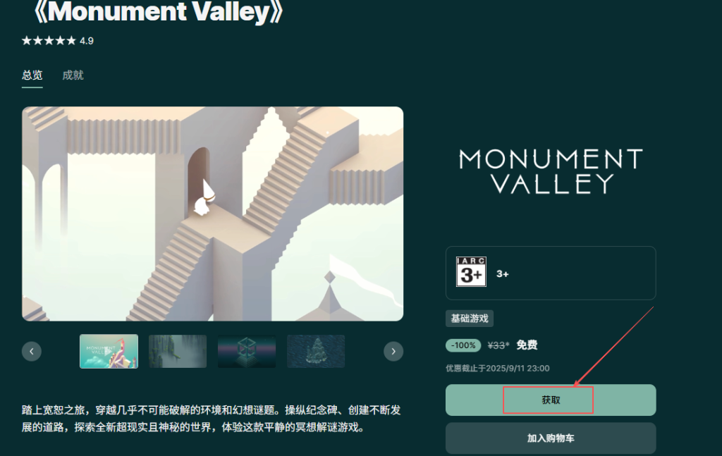 【EPIC本周喜加三】纪念碑谷免费领取!EPIC纪念碑谷领取教程