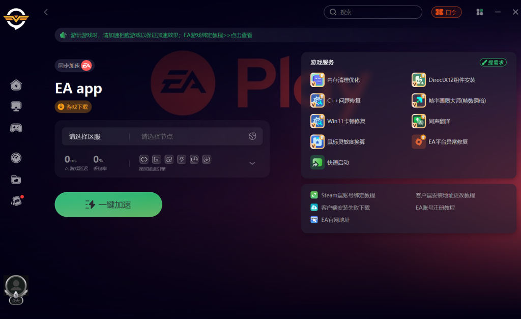 第一种是启用 “奇游加速器” 优化网络路由。奇游加速器能绕过国内部分运营商对国际短信及 Gmail 的过滤机制。玩家只需打开该加速器,搜索 EA App 平台下载或更新选项,选择合适节点并连接,之后重启 EA App,在 60 秒内重新尝试发送验证码即可。