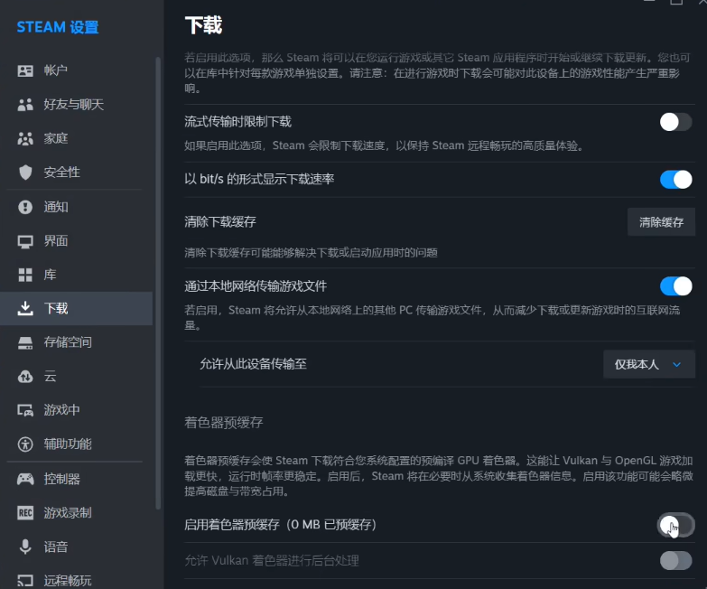 Steam的一些默认设置可能会影响购买页面的正常显示。玩家可以进入Steam的设置界面,找到下载选项,将着色器预缓存功能关闭,并清除着色器缓存。完成这些操作后,重启Steam客户端,再次尝试进入购买页面,看问题是否得到解决。