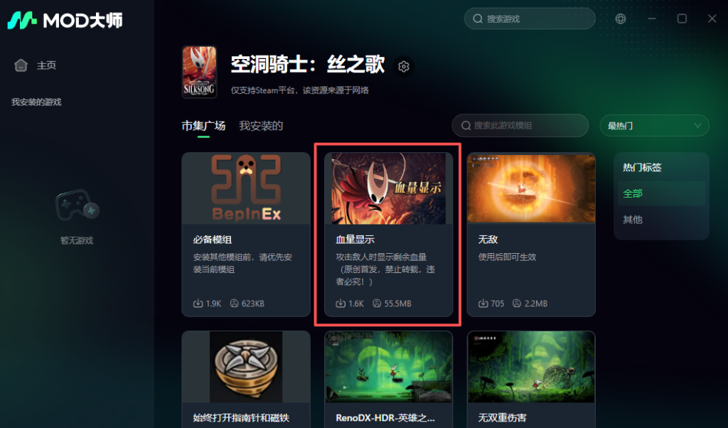 以上就是小编为各位玩家们带来的关于空洞骑士丝之歌可用MOD整合!去暗角/始终开启坐标护符/磁铁,希望能帮助到大家。