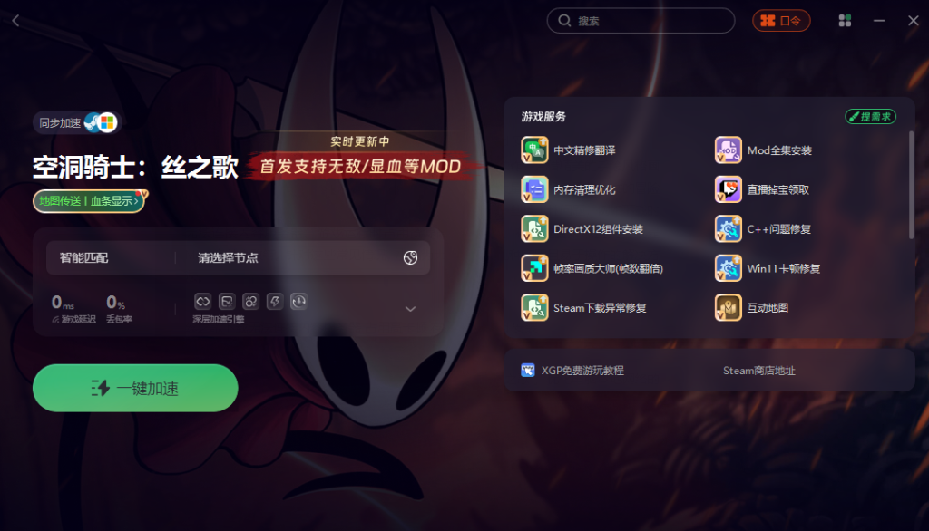 首先打开你的游戏平台,搜索“空洞骑士丝之歌”相关资源。要是遇到网络问题加载不出来,可以试试先开一个加速工具。打开奇游,搜索“丝之歌”。优化电脑本地网络的环境,从而解决因网络问题导致的下载无法连接内容服务器、占用高卡顿、存档位置异常、mod安装失败等情况,顺利解决问题。