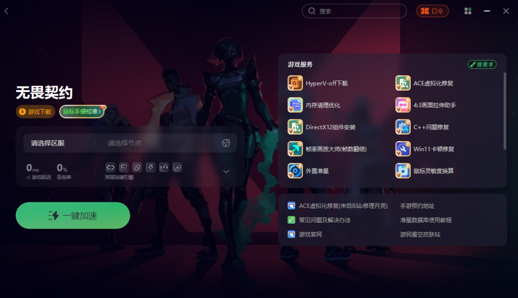 在打开游戏之前,先启动奇游加速工具,搜索“无畏契约”并选择优化的服务器节点。通过奇游优化电脑本地的网络环境,能够有效降低网络延迟、减少数据包丢失,从而从根本上解决因网络问题引发的游戏卡顿、掉帧、抽帧以及低帧率运行等问题。