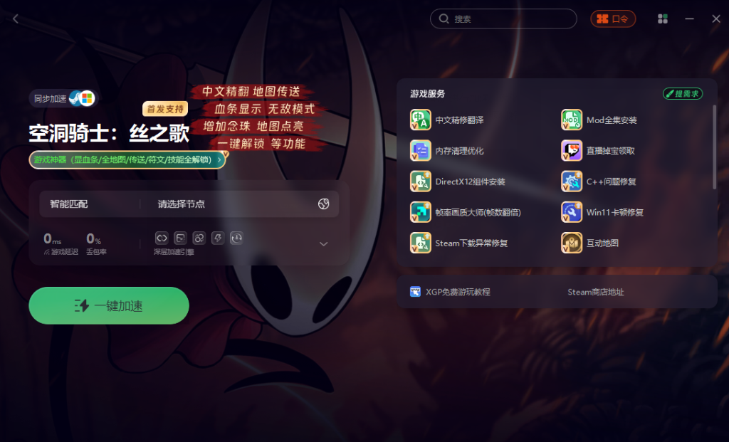 首先需要使用“奇游加速工具”。打开软件后,对《空洞骑士:丝之歌》进行加速。优化电脑本地网络的环境,从而解决因网络问题导致的游戏下载、安装失败等情况,顺利解决问题。