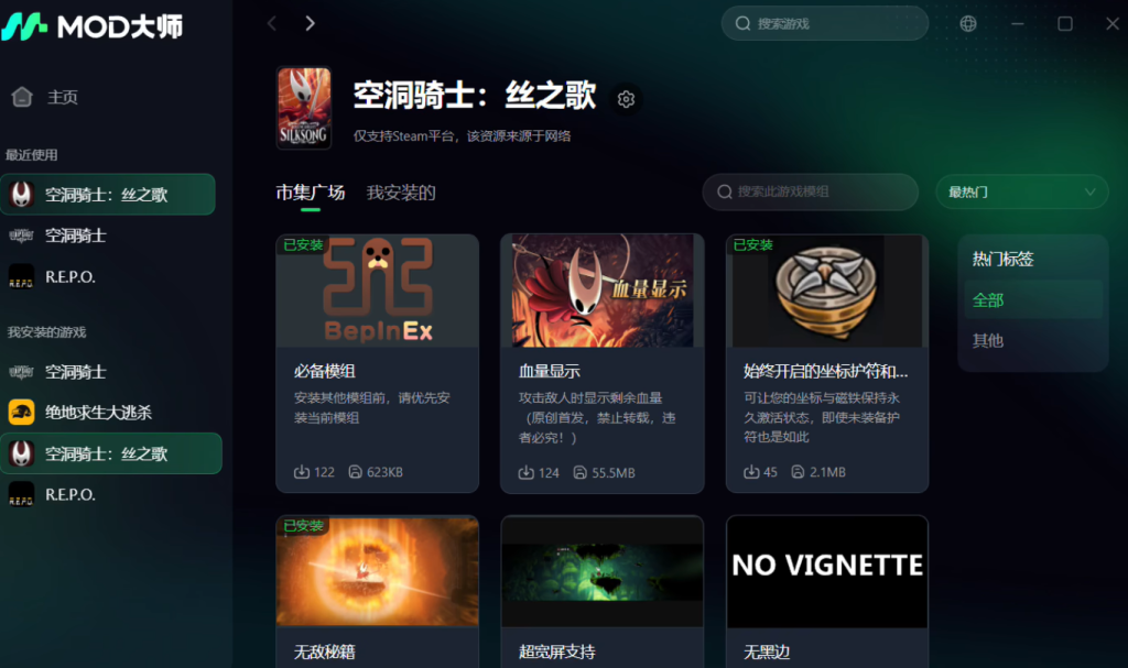 在游玩空洞骑士:丝之歌时,不少玩家会遇到一些困扰。比如跑图过程繁琐,常常需要在不同区域来回奔波,十分耗费时间和精力。不过丝之歌血条Mod,地图传送,汉化优化,无敌等MOD就能完美解决这个问题。下面小编就为大家详细介绍这些实用 MOD 的安装方法。