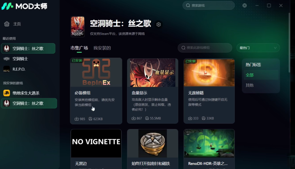 在游玩空洞骑士:丝之歌时,不少玩家反馈存在一些问题。游戏地图规模较大,却缺乏传送功能,这使得跑图过程变得十分煎熬,大大降低了游戏体验。此外游戏难度也让部分玩家觉得有些棘手。为了改善这些状况下面小编就为大家分享空洞骑士:丝之歌地图传送 MOD、汉化 MOD、无敌 MOD 以及改念珠 MOD 的安装教程。