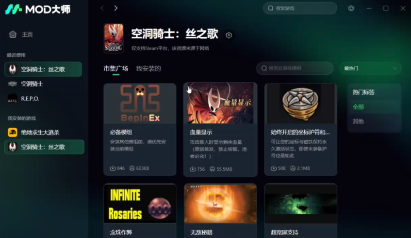 以上就是关于空洞骑士丝之歌MOD下载安装教程 必备MOD模组最新整合包下载,希望能帮助到大家。