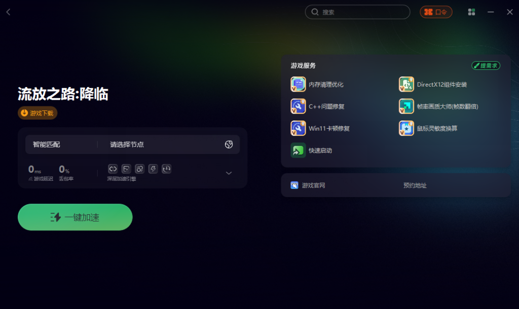 在打开《流放之路:降临》之前,先启动奇游加速工具,在软件内搜索“流放之路:降临”并选择对应的区服节点进行加速。此举可以优化电脑本地网络到游戏服务器的连接路径,有效降低延迟和丢包率,从而解决因网络问题导致的各类连接失败和加载异常,让您顺利进入游戏。