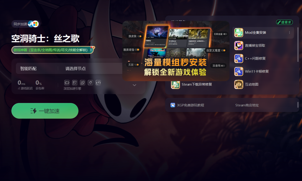 想要开启联机之旅首先得借助奇游加速工具。在奇游中搜索丝之歌进行加速操作,在右侧界面,能看到相关的 MOD 和集选项,点击进入后,会发现里面包含多个实用的 MOD,这些 MOD 均可直接安装使用。