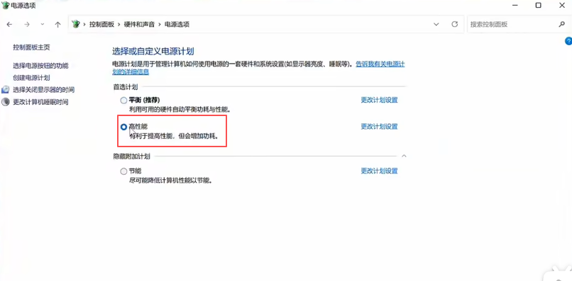 接着我们打开控制面板,找到电源选项,把电源计划改成“高性能模式”,这样能让显卡更好地发挥性能。