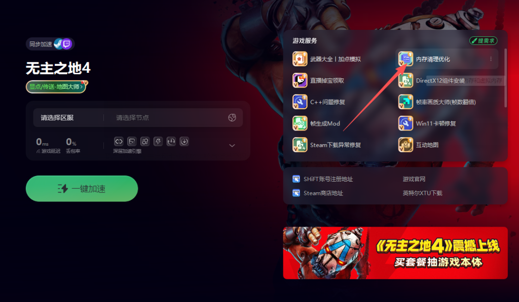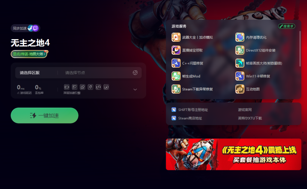 目前无主之地4游戏是支持帧生成功能,不过部分玩家的电脑可能无法直接启动功能,这时就可以借助安装帧生成mod来解决。玩家们可以使用奇游加速工具加速无主之地4。