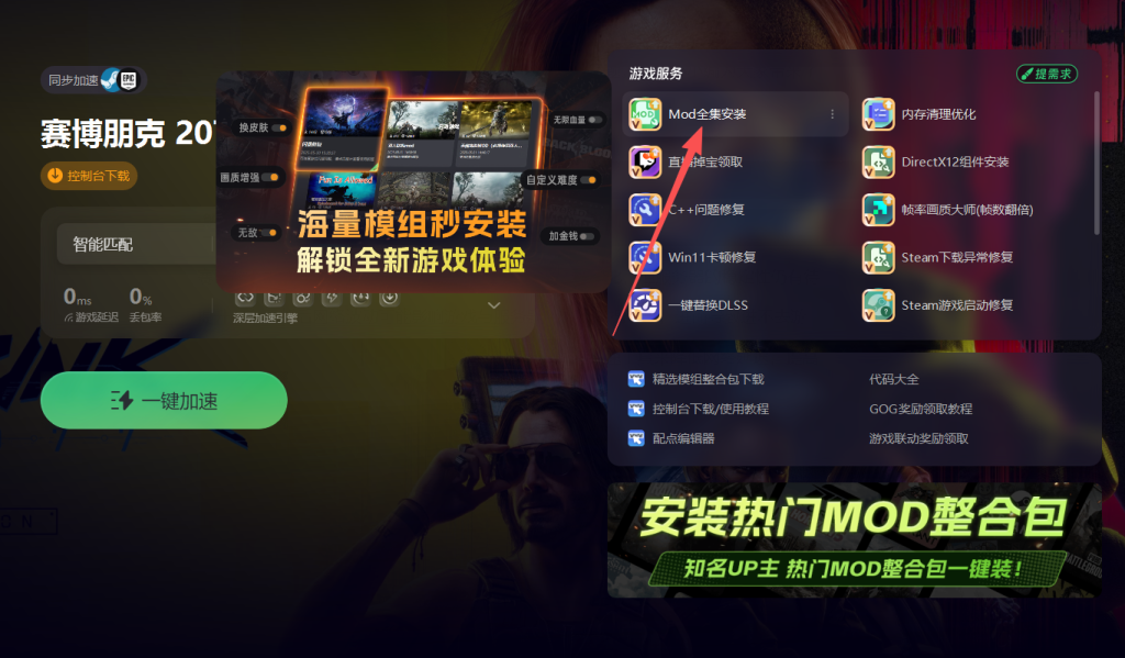 赛博朋克2077的服务器在全球分布,尽管进行了多次优化,但服务器的稳定性仍有待提升。在更新后网络波动可能影响游戏与服务器之间的数据传输,进而导致进不去游戏、打不开以及mod失效等情况。此时可以借助奇游加速工具来降低网络延迟,提高数据传输的稳定性,让游戏能够顺利连接服务器。