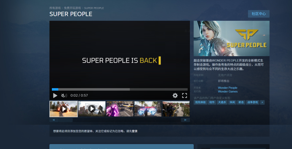 至于下载注册方面,大家可以打开奇游点击右侧的商店地址,进入Super People超击突破的游戏界面。