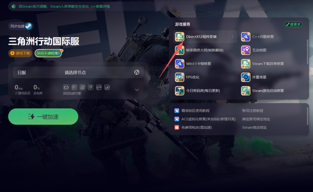 dx12报错是玩家在更新游戏后常遇到的问题之一,这很可能是因为电脑缺少DX12组件。通过奇游加速工具界面提供的DX12组件安装选项,就可以下载并安装DX12组件,为游戏运行提供必要的支持。