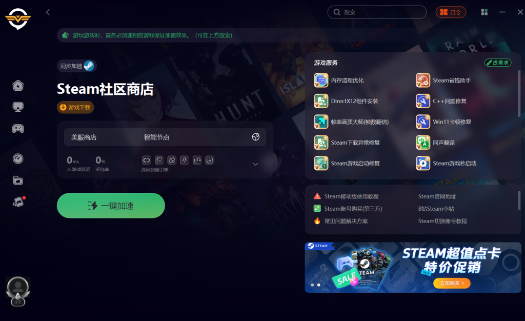 第一种是用奇游加速器优化网络。Steam 验证服务器位于海外,国内直连易出现延迟高、数据传输中断等问题,奇游加速器针对 Steam 搭建了专属加速节点,能优化跨区域网络传输路径,降低验证服务器连接延迟与丢包率。只需下载打开加速器,搜索 “Steam” 并选择对应平台(PC / 网页端),点击 “一键加速”,加速完成后重启 Steam 客户端或浏览器重新验证即可,在口令输入处填写 “qy666”,还能领取 3 天有效会员。