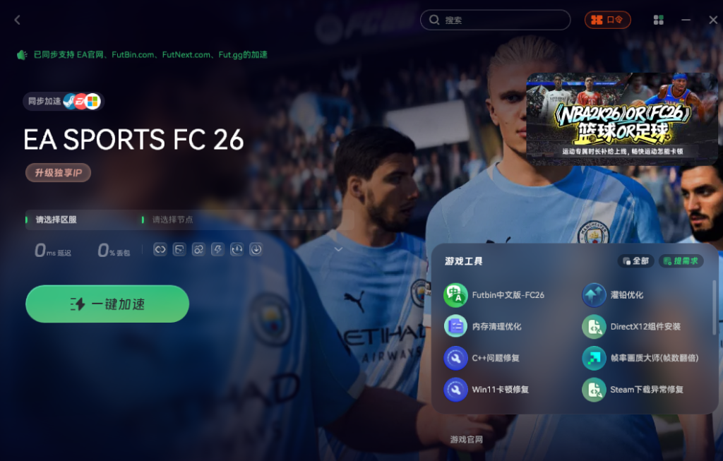 在打开FC26过程中,打开奇游,搜索”FC26″,优化电脑本地网络的环境,从而解决因网络问题导致的FC26离线模式、卡顿掉帧、dx报错、显存不足或显卡报错等情况,顺利解决问题。