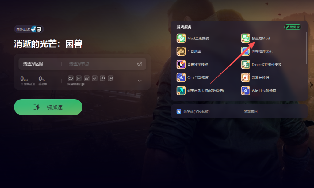 开启帧生成功能对提升帧数很有帮助,可以借助奇游加速工具来解决问题。打开奇游加速器搜索消光困兽加速。