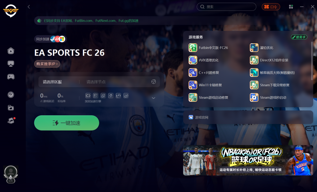 首先,用奇游加速器优化网络连接,能有效解决登录与服务器连接问题。EA Sports FC26 需稳定连接 EA 在线服务器,国内网络环境复杂,尤其高峰时段或使用校园网、公共 Wi-Fi 时,易出现延迟高、丢包严重的情况,导致登录超时或连接失败。奇游加速器可搭建稳定网络通道,降低与游戏服务器的延迟,提升数据传输效率,避免网络波动引发的登录异常。建议启动游戏前先开启奇游加速器,选择对应游戏节点完成加速后再进入客户端,在口令兑换处输入 “qy666” 可领取 3 天加速时长。