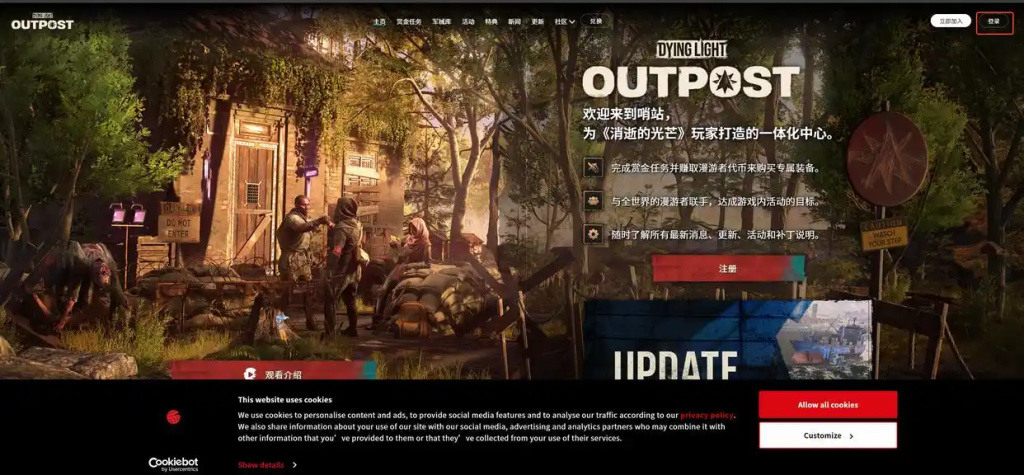 兑换方式也很简单,没有预购的玩家也可以参与。首先进入游戏官网,点击“Home”进入漫游者哨站页面。