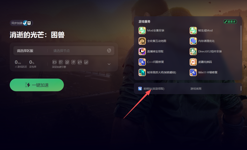 想要领取这些道具奖励玩家需先到漫游者哨站官网完成注册绑定游戏平台。不过官网直连时常常会出现加载卡顿甚至无法进入的情况。玩家可以使用奇游加速工具来解决问题。开启加速器后点击前哨站奖励领取入口进入。