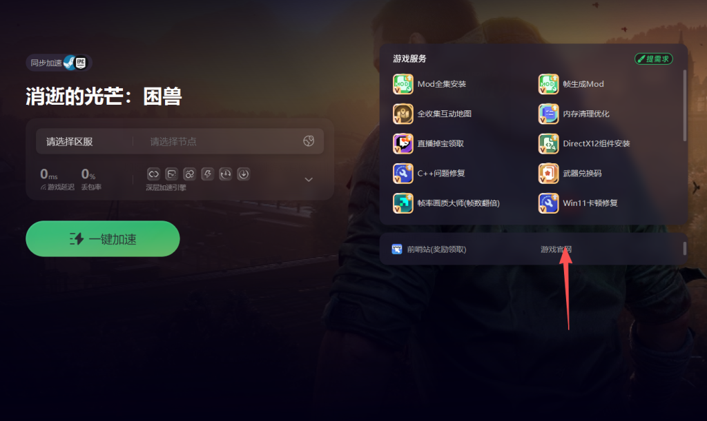 加速开启后在加速页面右侧找到游戏官网入口,点击跳转至官方网站。